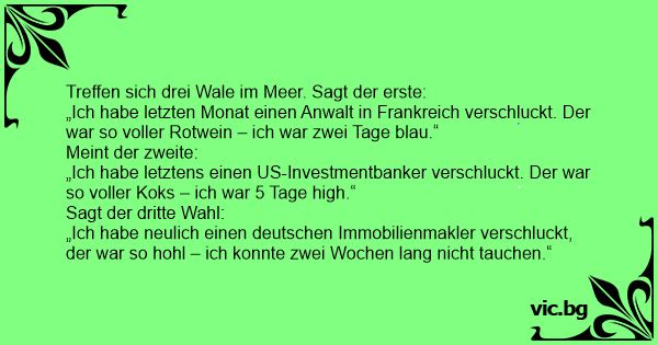 Treffen sich drei Wale im Meer. Sagt der erste: