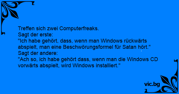 "Ach so, ich habe gehört dass, wenn man die Windows CD vorwärts abspielt, wird Windows installiert."