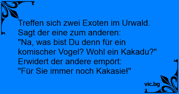 "Na, was bist Du denn für ein komischer Vogel? Wohl ein Kakadu?"
