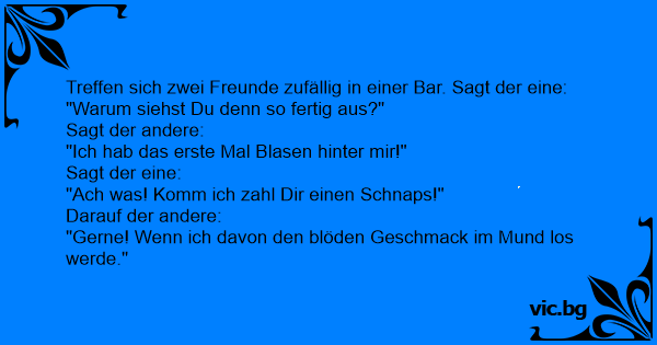 Treffen sich zwei Freunde zufällig in einer Bar. Sagt der eine: