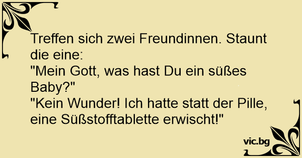 "Kein Wunder! Ich hatte statt der Pille, eine Süßstofftablette erwischt!"