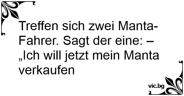 Treffen sich zwei Manta-Fahrer. Sagt der eine: – „Ich will jetzt mein Manta verkaufen
