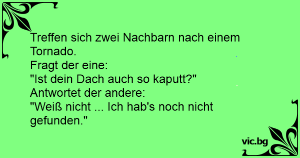 Treffen sich zwei Nachbarn nach einem Tornado.