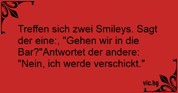 Treffen sich zwei Smileys. Sagt der eine:, "Gehen wir in die Bar?"Antwortet der andere: