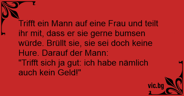 Trifft ein Mann auf eine Frau und teilt ihr mit, dass er sie gerne вuмsеn würde. Brüllt sie, sie sei doch keine Нurе. Darauf der Mann: