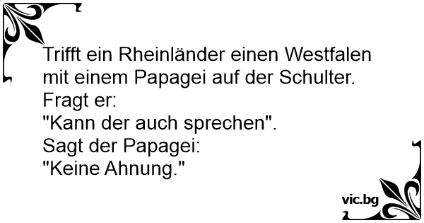 Trifft ein Rheinländer einen Westfalen mit einem Papagei auf der Schulter. Fragt er:
