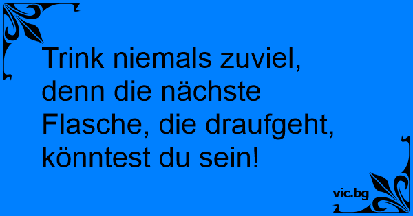 Trink niemals zuviel, denn die nächste Flasche, die draufgeht, könntest du sein!