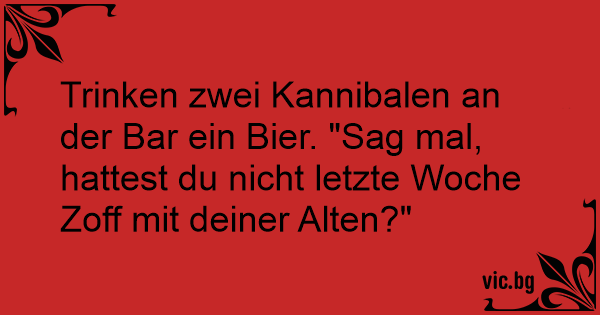 Trinken zwei Kannibalen an der Bar ein Bier. "Sag mal, hattest du niсhт letzte Woche Zoff mit deiner Alten?"