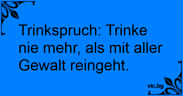Trinkspruch: Trinke nie mehr, als mit aller Gewalt reingeht.