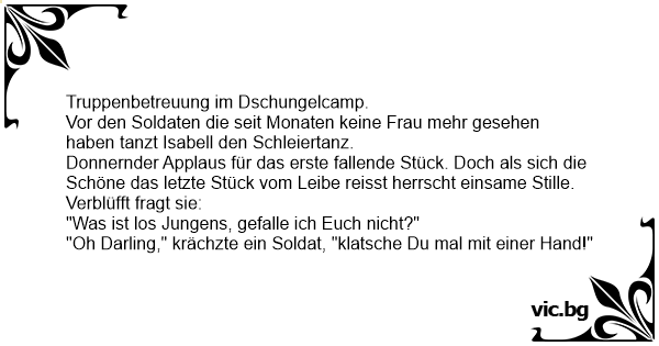 "Oh Darling," krächzte ein Soldat, "klatsche Du mal mit einer Hand!"