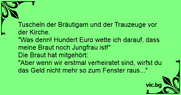 "Was denn! Hundert Euro wette ich darauf, dass meine Braut noch Jungfrau ist!"