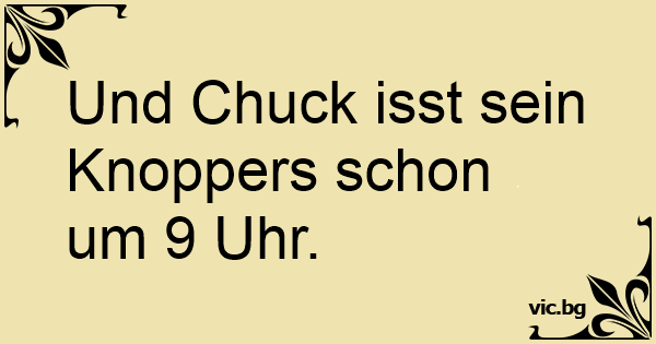 Und Chuck isst sein Knoppers schon um 9 Uhr.