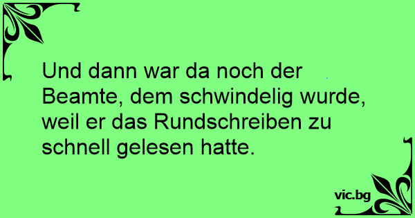 Und dann war da noch der Beamte, dem schwindelig wurde, weil er das Rundschreiben zu schnell gelesen hatte.