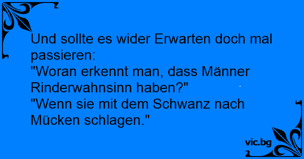 "Woran erkennt man, dass Männer Rinderwahnsinn haben?"