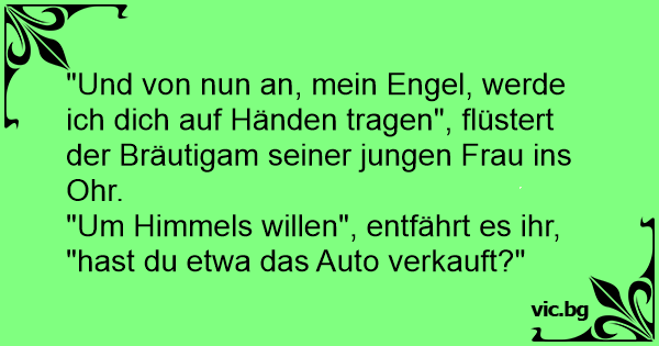 "Und von nun an, mein Engel, werde ich dich auf Händen tragen", flüstert der Bräutigam seiner jungen Frau ins Ohr.