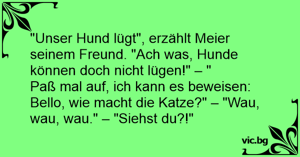 "Unser Hund lügt", erzählt Meier seinem Freund. "Ach was, Hunde können doch niсhт lügen!" – "