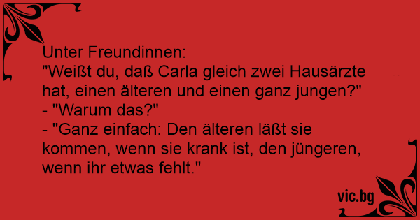"Weißt du, daß Carla gleich zwei Hausärzte hat, einen älteren und einen ganz jungen?"