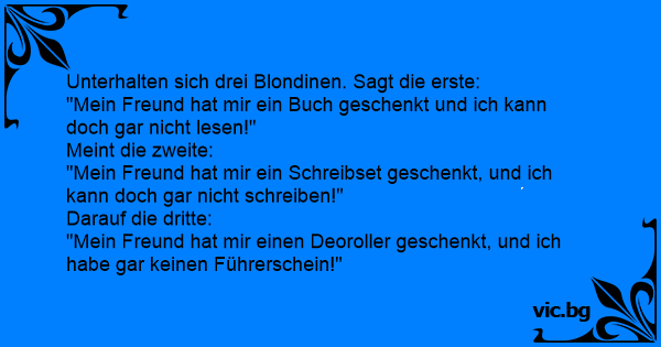 Unterhalten sich drei Blondinen. Sagt die erste: