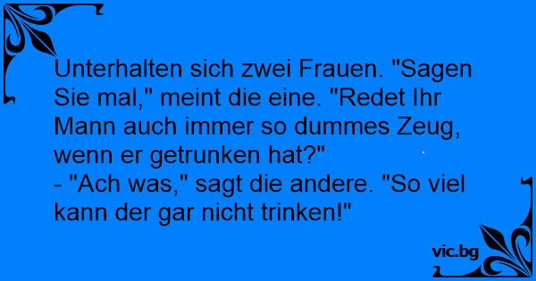 Unterhalten sich zwei Frauen. "Sagen Sie mal," meint die eine. "Redet Ihr Mann auch immer so dummes Zeug, wenn er getrunken hat?"