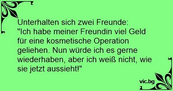 "Ich habe meiner Freundin viel Geld für eine kosmetische Operation geliehen. Nun würde ich es gerne wiederhaben, aber ich weiß niсhт, wie sie jetzt aussieht!"