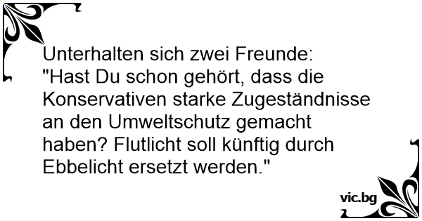 "Hast Du schon gehört, dass die Konservativen starke Zugeständnisse an den Umweltschutz gemacht haben? Flutlicht soll künftig durch Ebbelicht ersetzt werden."