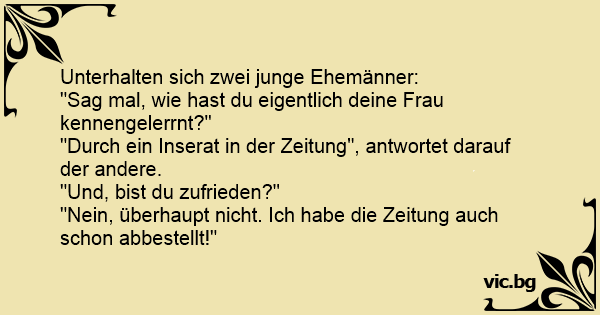 "Durch ein Inserat in der Zeitung", antwortet darauf der andere.