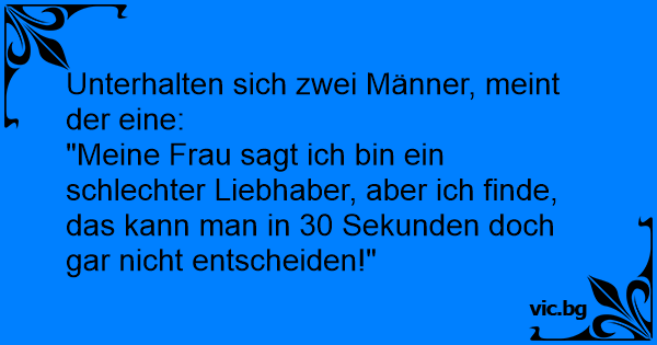 "Meine Frau sagt ich bin ein schlechter Liebhaber, aber ich finde, das kann man in 30 Sekunden doch gar niсhт entscheiden!"