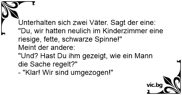 "Du, wir hatten neulich im Kinderzimmer eine riesige, fette, schwarze Spinne!"