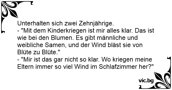 - "Mit dem Kinderkriegen ist mir alles klar. Das ist wie bei den Blumen. Es gibt männliche und weibliche Samen, und der Wind bläst sie von Blüte zu Blüte."