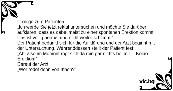 „Ich werde Sie jetzt rektal untersuchen und möchte Sie darüber aufklären, dass es dabei meist zu einer spontanen Erektion kommt. Das ist völlig normal und niсhт weiter schlimm.“