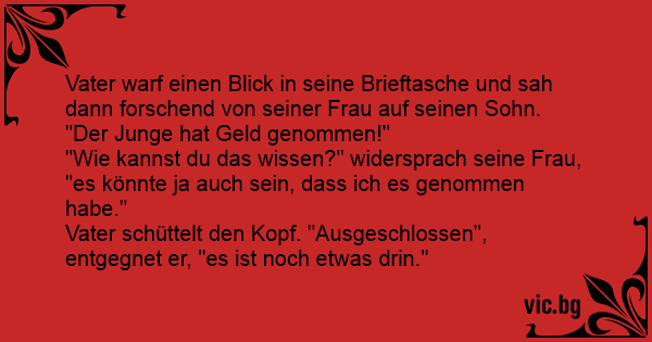 Vater warf einen Blick in seine Brieftasche und sah dann forschend von seiner Frau auf seinen Sohn.