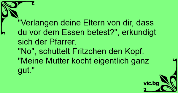 Kees tegen Jantje: "Moeten jullie ook altijd bidden voor het eten?"Jantje: "Nee, mijn moeder kan goed koken."