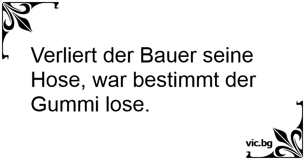 Verliert der Bauer seine Hose, war bestimmt der Gummi lose.