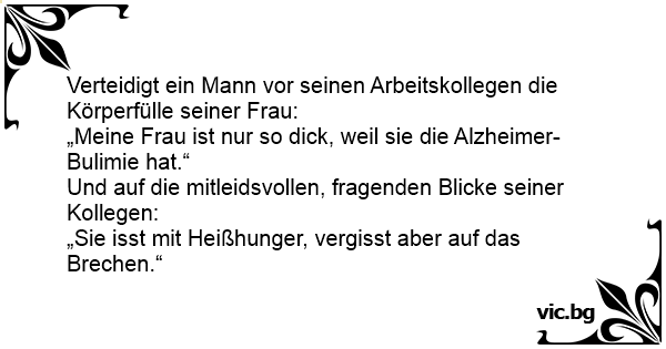 „Meine Frau ist nur so diск, weil sie die Alzheimer-Bulimie hat.“