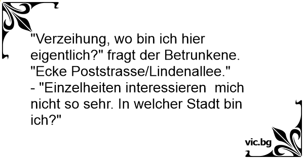 "Verzeihung, wo bin ich hier eigentlich?" fragt der Betrunkene.
