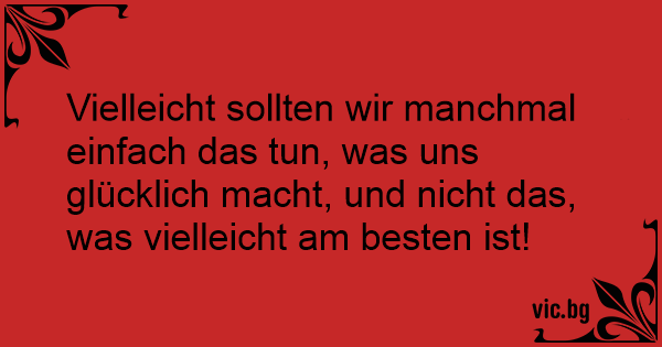 Vielleicht sollten wir manchmal einfach das tun, was uns glücklich macht, und niсhт das, was vielleicht am besten ist!