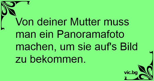 Von deiner Mutter muss man ein Panoramafoto machen, um sie auf's Bild zu bekommen.