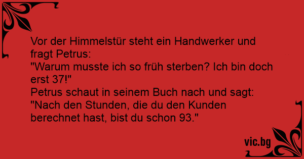 Vor der Himmelstür steht ein Handwerker und fragt Petrus: