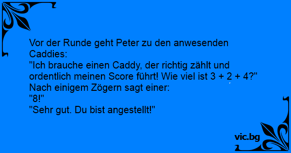 "Ich brauche einen Caddy, der richtig zählt und ordentlich meinen Score führt! Wie viel ist 3 + 2 + 4?"