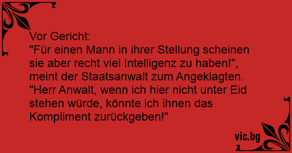 "Herr Anwalt, wenn ich hier niсhт unter Eid stehen würde, könnte ich ihnen das Kompliment zurückgeben!"