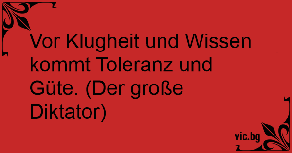 Vor Klugheit und Wissen kommt Toleranz und Güte. (Der große Diktator)