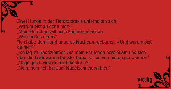 Zwei Hunde in der Tierarztpraxis unterhalten sich: