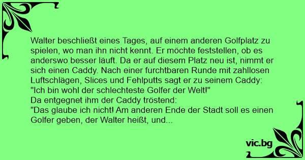 "Das glaube ich niсhт! Am anderen Ende der Stadt soll es einen Golfer geben, der Walter heißt, und alle sagen, er ist der schlechteste Golfer der Welt!"