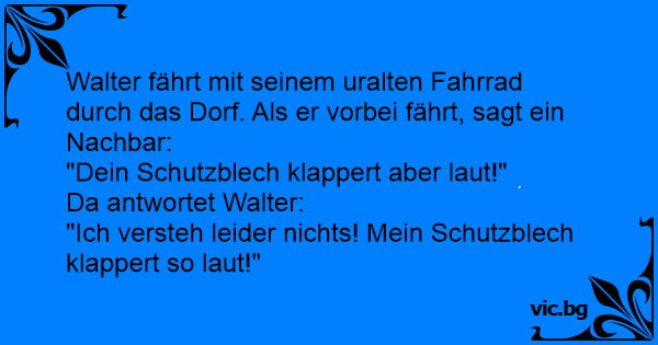 Walter fährt mit seinem uralten Fahrrad durch das Dorf. Als er vorbei fährt, sagt ein Nachbar: