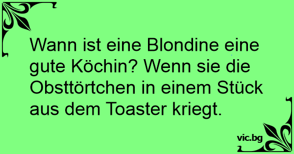 Wann ist eine Blondine eine gute Köchin? Wenn sie die Obsttörtchen in einem Stück aus dem Toaster kriegt.
