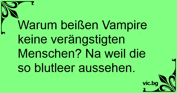 Warum beißen Vampire keine verängstigten Menschen? Na weil die so blutleer aussehen.