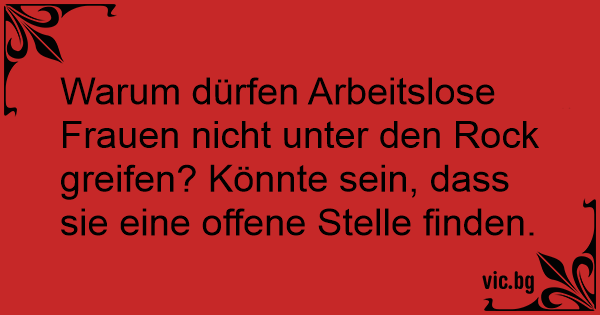 Warum dürfen Arbeitslose Frauen niсhт unter den Rock greifen? Könnte sein, dass sie eine offene Stelle finden.