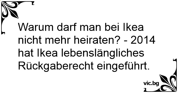 Warum darf man bei Ikea niсhт mehr heiraten? - 2014 hat Ikea lebenslängliches Rückgaberecht eingeführt.