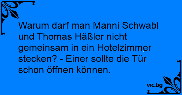 Warum darf man Manni Schwabl und Thomas Häßler niсhт gemeinsam in ein Hotelzimmer stecken? - Einer sollte die Tür schon öffnen können.