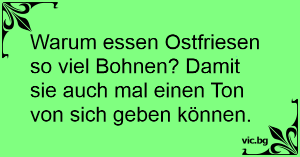 Warum essen Ostfriesen so viel Bohnen? Damit sie auch mal einen Ton von sich geben können.